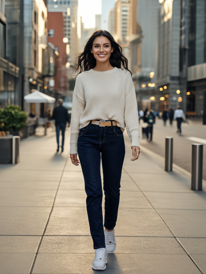 Die dunkelblauen Jeans sind ein zeitloses Piece, das Komfort und Stil vereint.